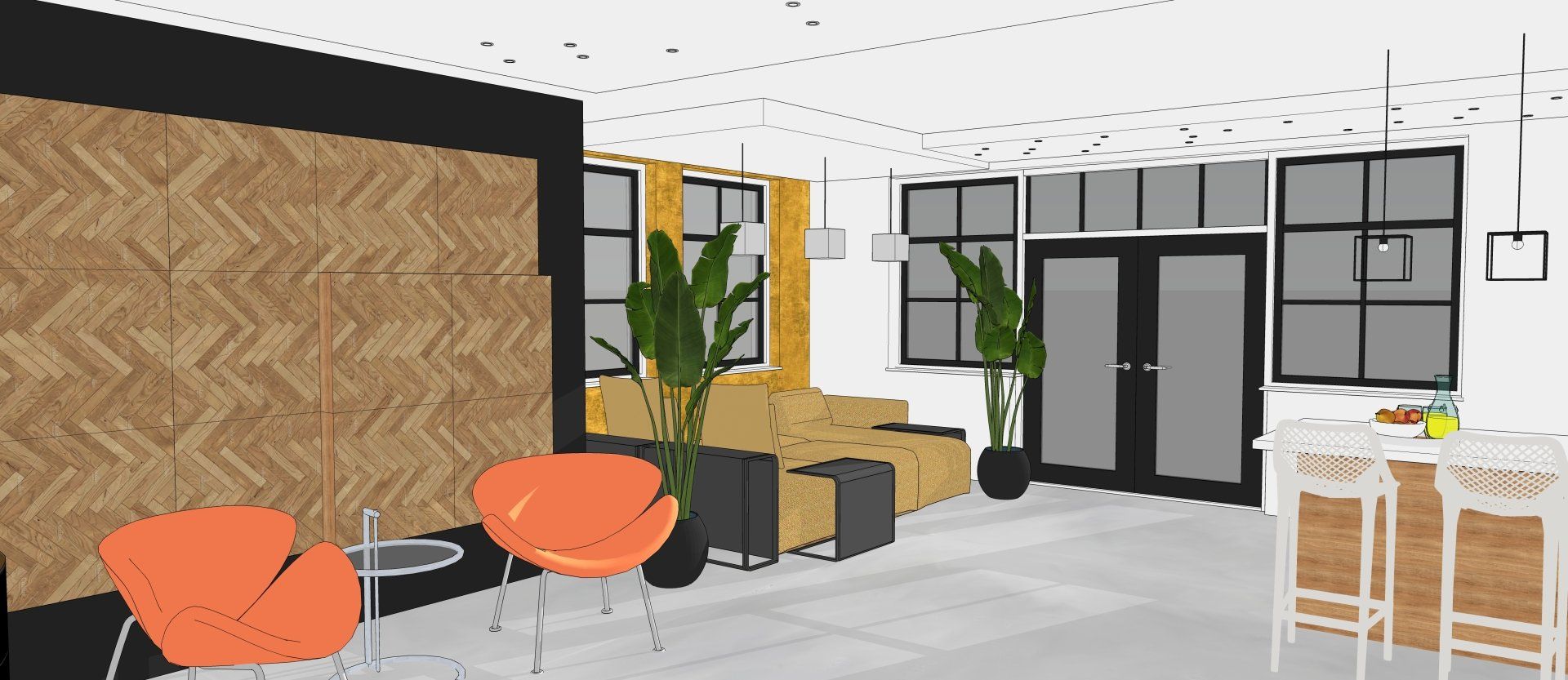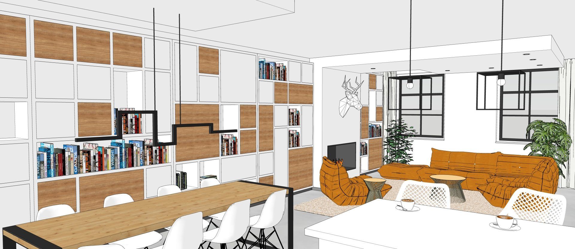 - Enerzijds ruimtelijkheid en openheid ( zo min mogelijk deuren) en anderzijds een intieme huiselijke inrichting om ook met z’n tweeën comfortabel te zitten en